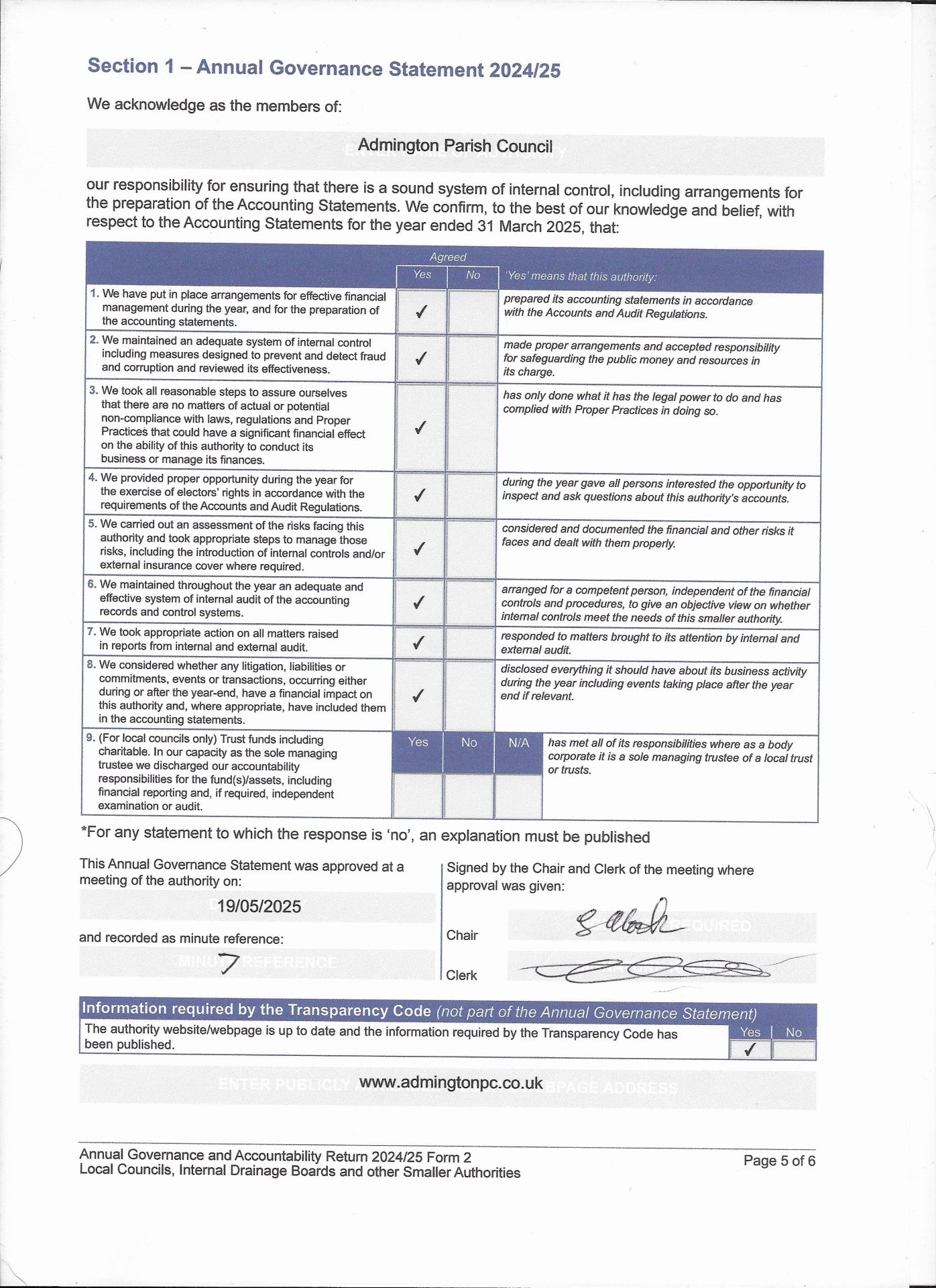 | Admington Section 1- Annual Governance Statement 2024-25 | 410.98 KB | JPG |